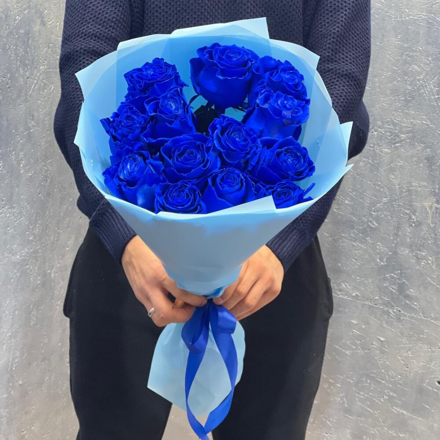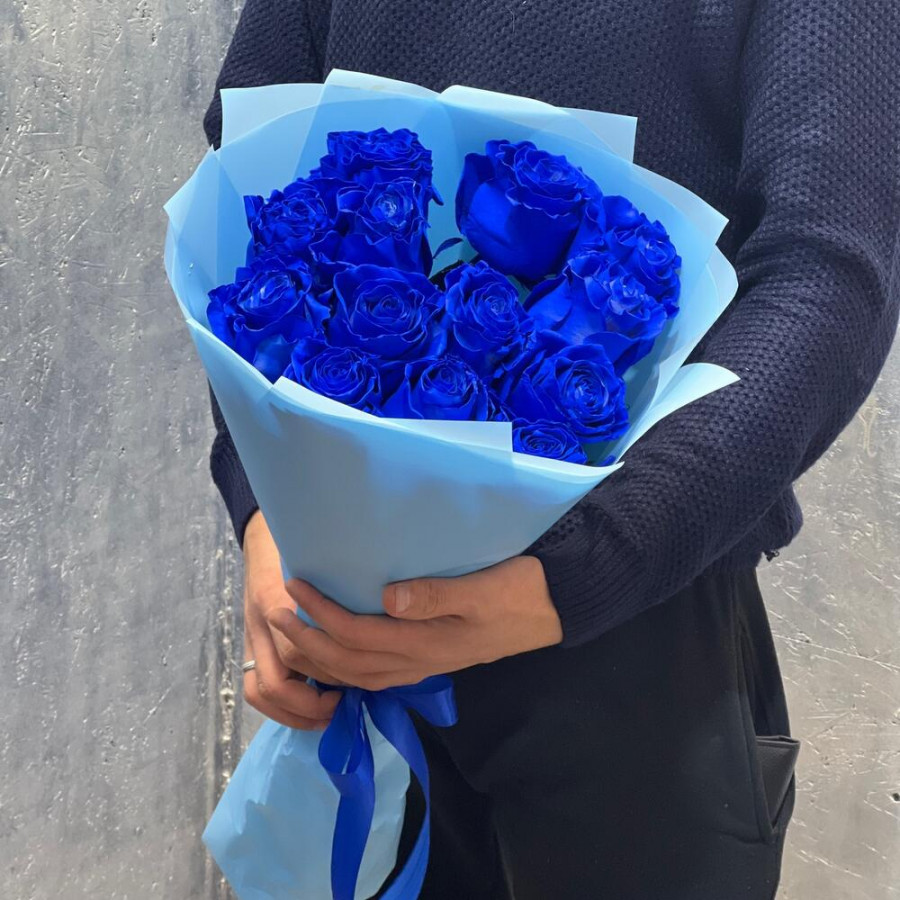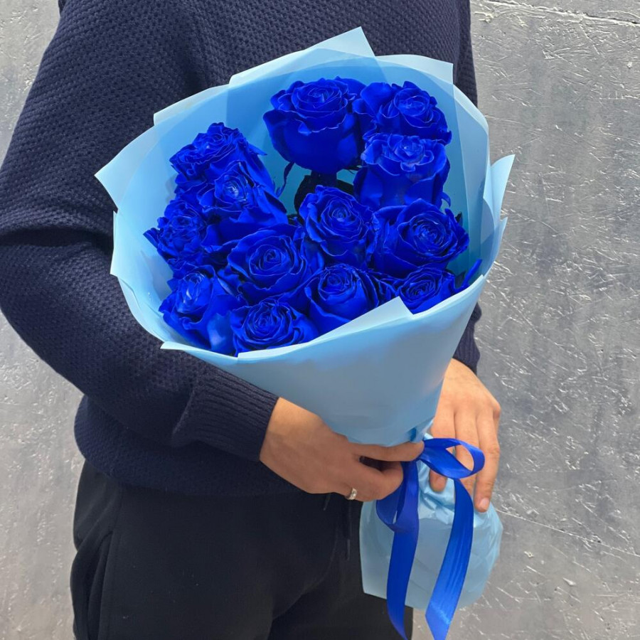 Глубокий синий оттенок «Индиго» подчёркивает элегантность классических роз и смотрится дорого в любом интерьере. Букет собран из 13 свежих роз, оформлен в аккуратную голубую плёнку и перевязан лентой в тон. Универсальный подарок для дня рождения, юбилея, корпоративного повода или как неожиданное «спасибо».