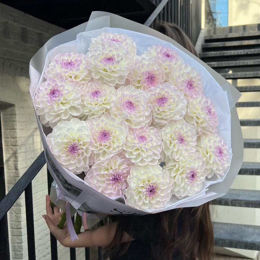 Букет из 19 бело-лиловых георгин в Берёзовском