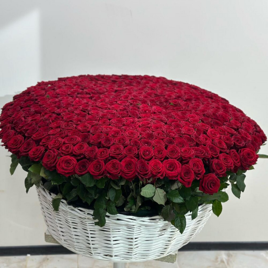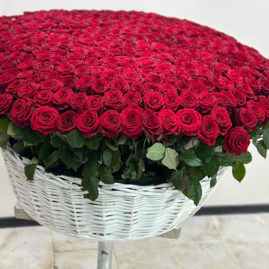 Букет из 501 красной розы в белой корзине