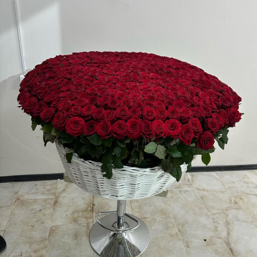 На фото букет из 501 красной розы в белой корзине. В составе: роза 501 шт, оазис флористический 5 шт, корзина (xl) 1 шт, . Все цветы свежие и ароматные, букет красиво оформлен и отлично подходит для подарка. Доступна доставка цветов или самовывоз.