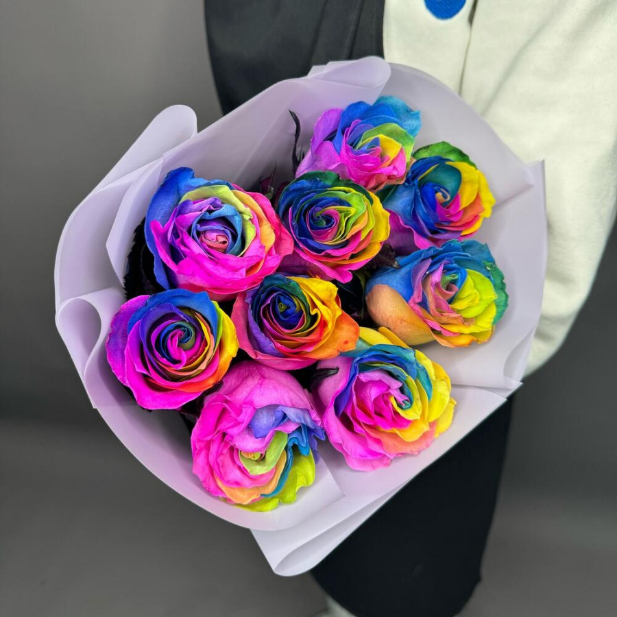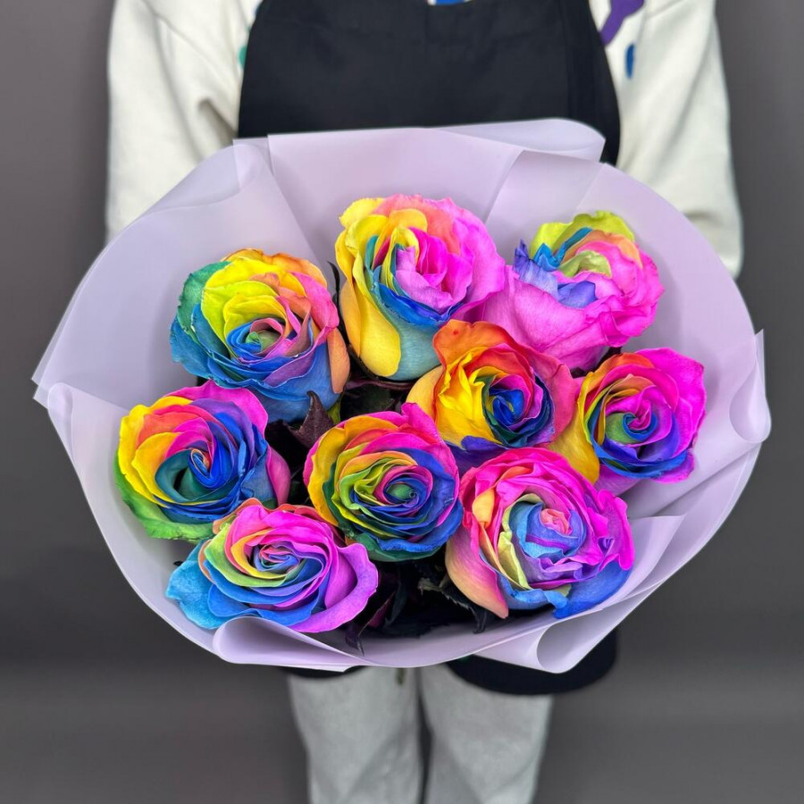 Часто выбирают Розы Радужные розы 9 роз