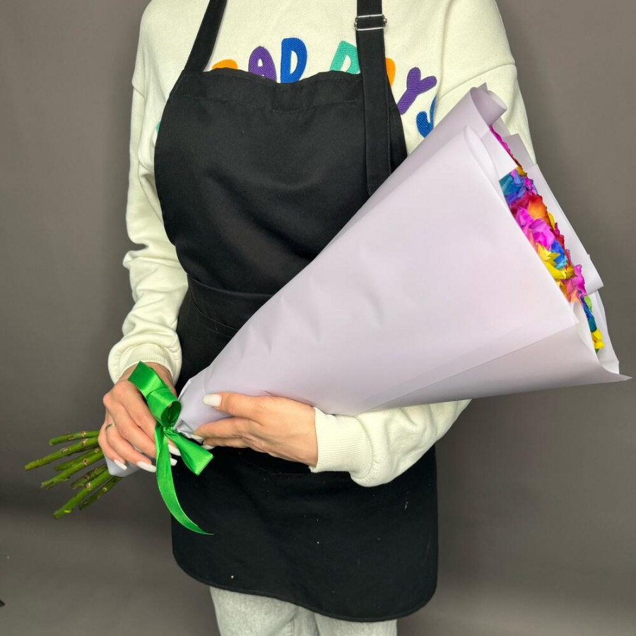 Лента атласная - 1 шт. Радужная роза - 9 шт. Дизайнерская упаковка - 1 шт.