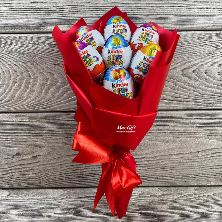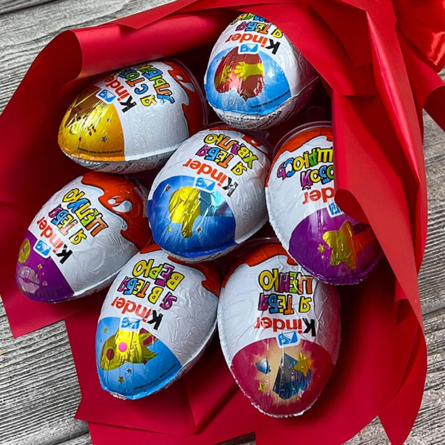 Атласная лента - 1 шт. Kinder сюрприз - 7 шт. упаковочная пленка - 1 шт.
